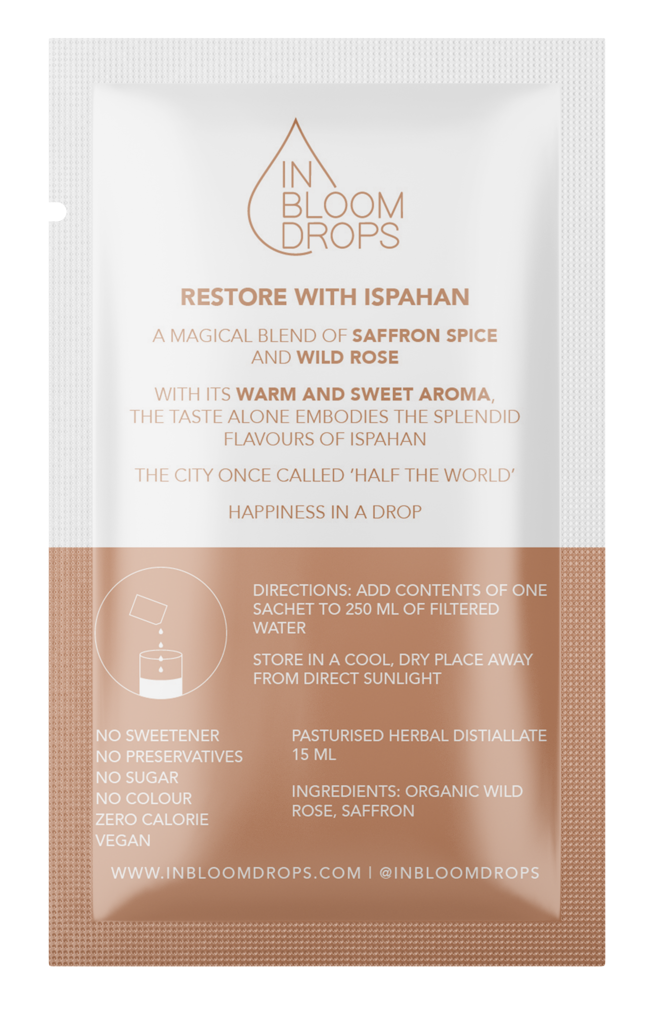 In Bloom Drops Sachets are the first, and currently only, natural botanical distillate with no preservatives. Crafted using distinctive distillation techniques, the purest form of botanical extraction. Each blend offers unique benefits in beauty, health and wellness. To be enjoyed with your choice of beverage.